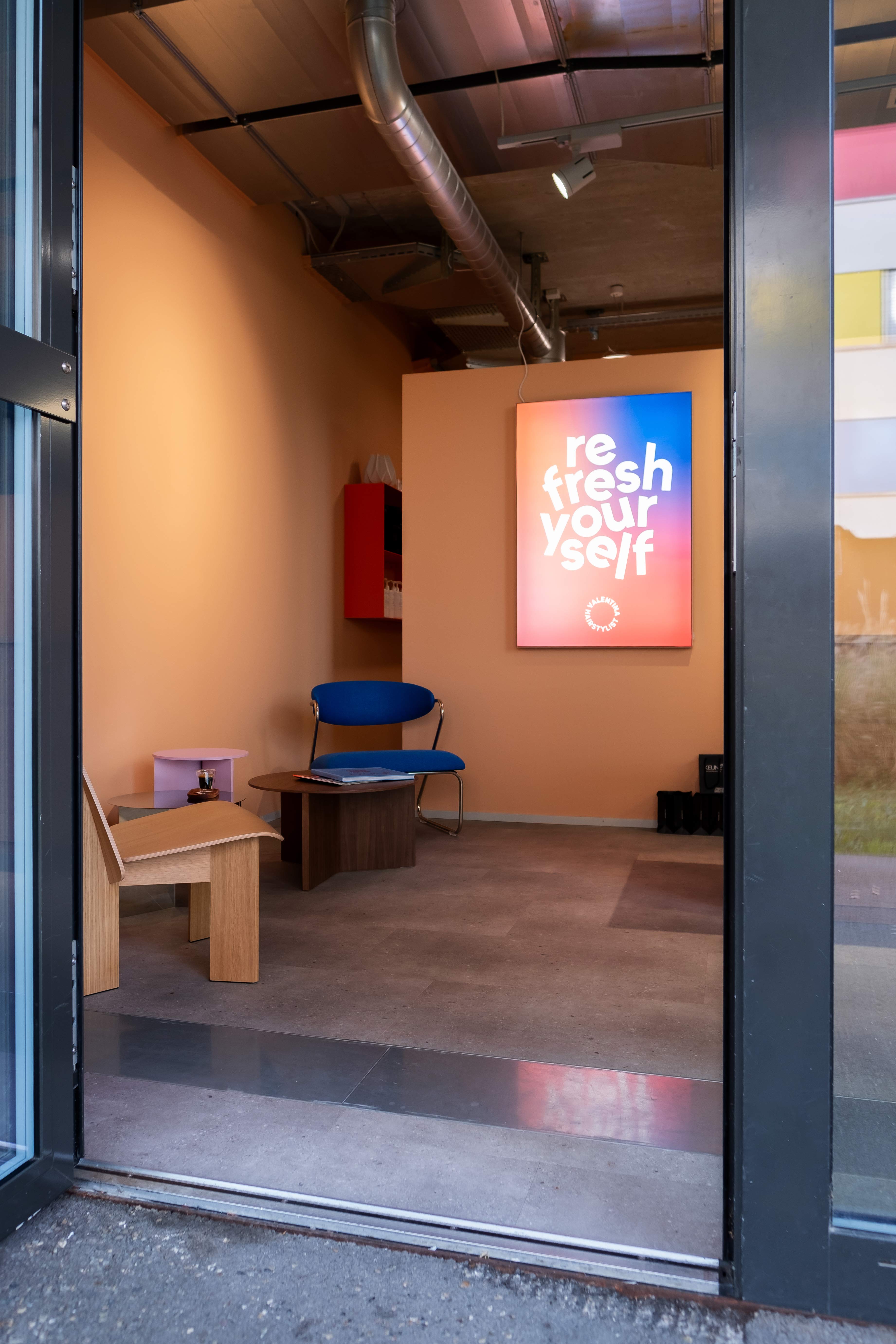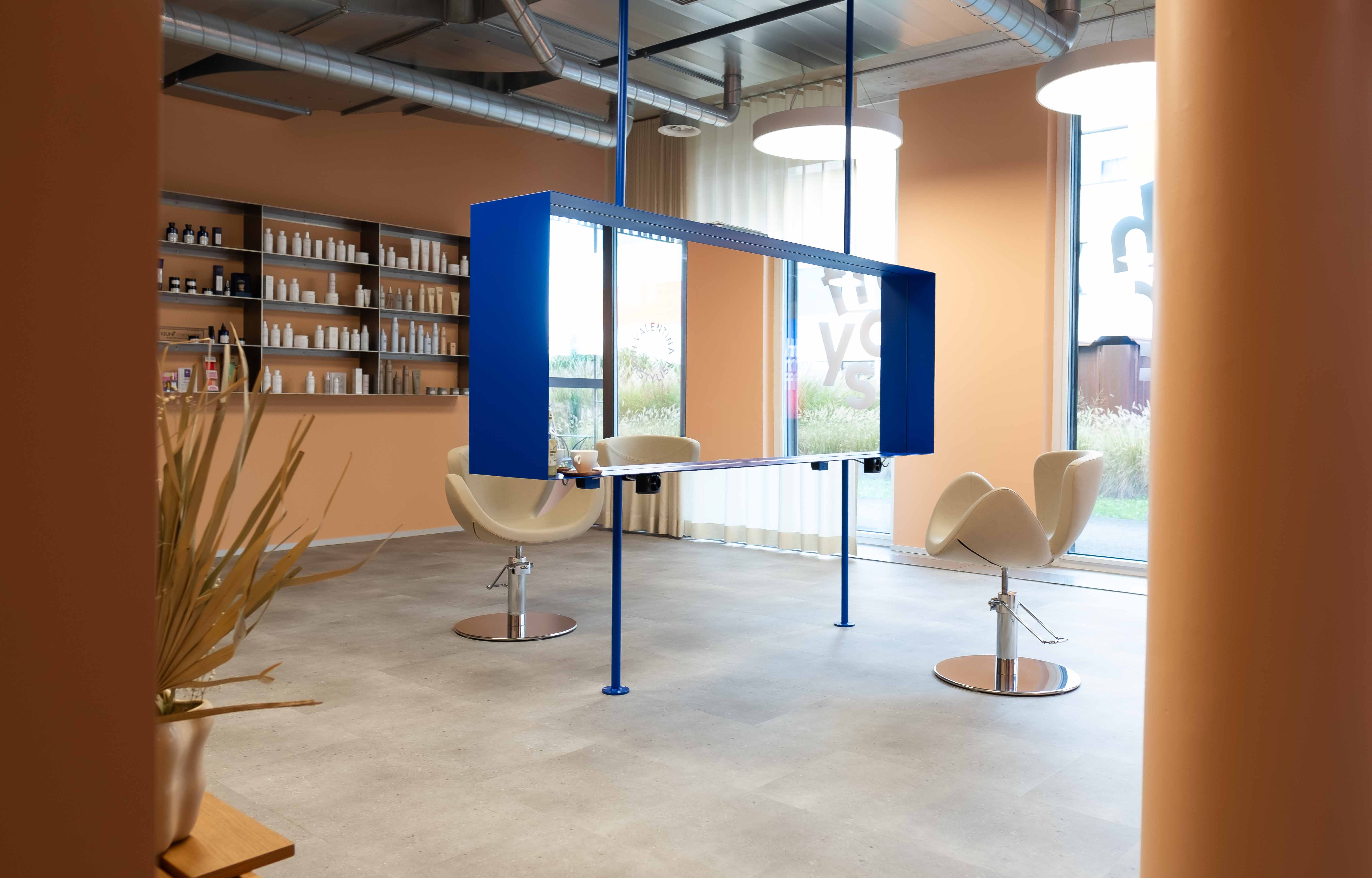 Hinter dem Studio steht Valentina Lauria, eine renommierte Coiffeurin und mehrfache Weltmeisterin im Haarschneiden. Diese Softrenovation zeigt, wie durchdachtes Studio-Design einen Coiffeursalon ressourcenschonend und stilvoll aufwerten kann.